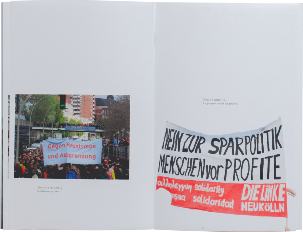 Mettre en branle, passer en deuxième vitesse, passer en vitesse « Rapido ». Selon la physique newtonienne, tout corps persévère dans l’état de mouvement uniforme en ligne droite dans lequel il se trouve à moins que quelque force n'agisse sur lui, et ne le contraigne à changer d'état. Directions est le moyen que j’utilise pour prendre du recul, et mettre en relation des projets qui seraient autrement sans lien apparent. J’y présente six projets bien uniques, prenant chacun différentes directions, mais définissant ma démarche et ma pratique artistique. On y retrouve [ ] mon projet de fin de DEC, où j’ai eu la chance de créer un livre d’art auto-publié et présenté à la galerie AXENÉO7 de Gatineau. Ce projet fut ma première propulsion dans le domaine du design imprimé, et m’amena à poursuivre mes recherches dans cette direction. We will start a beat, we will start a movement est mon premier projet d’affiche qui me fit percer dans ma démarche itérative. J’y ai découvert une passion pour le travail graphique manuel, le découpage, le collage, le photo copiage et l’impression non-industrielle. Ce fut aussi, en combinaison avec la série d’affiches Yes no charter, mes premiers projets possédant une lecture politisée. La campagne de sensibilisation Santé et Sécurité Concordia symbolise pour moi une réelle réussite lors de mon parcours universitaire. L’échelle de ce projet me permit de comprendre l’impact que pouvait avoir ma démarche sur le vrai monde, le monde tangible, la réalité. Poursuivant dans cette direction, les projets VS et Personne n’est illégal-e, démontrent ma volonté d’apporter mes idées politiques au monde extérieur, de façon constructive et ouverte.